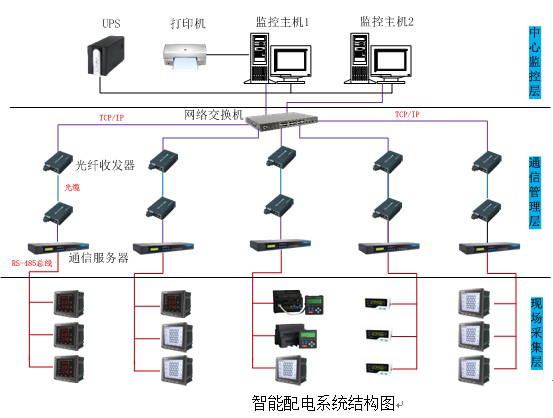 根據數據中心的規模與要求,對智能配電系統的要求會有所不同,但是從本質上來講,全部都是通過多功能電力儀表采集終端數據,經通訊總線上傳至上位機系統,經過專業的系統軟件進行處理得以對智能建筑進行監視與控制。